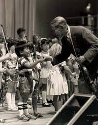 "La madre de uno de mis alumnos vino un día a preguntar por su hijo. El niño tenía un buen sentido musical, practicaba de manera regular y era un muy buen estudiante. Ella me dijo: profesor, ¿llegará mi hijo a ser algo?. Yo respondí riendo: No, no llegará a ser "algo". Parece que para los padres de hoy en día es bastante normal tener este tipo de pensamientos acerca de sus hijos. Es una visión educativa fría y calculadora. Cuando oigo cosas como esta me gusta responder con humor, y la madre por ello quedó bastante alarmada y sorprendida. Así que continué: se convertirá en una persona noble a través de la música, de tocar el violín; ¿acaso eso no es suficiente?. No debería ser tu objetivo que tu hijo gane mucho dinero o tenga una elevada posición social; es un pensamiento bastante ofensivo. Una persona con un corazón bello y puro encontrará la felicidad; la única preocupación que debería tener un padre debería ser criar a sus hijos como nobles seres humanos. Esto debería ser suficiente. Tu hijo toca el violín muy bien; ahora debemos intentar hacer de él una persona espléndida en mente y corazón."
